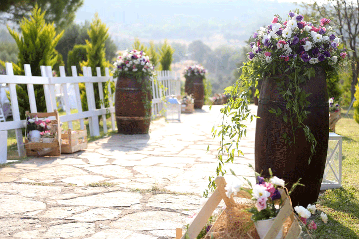 2015 yılında Zeytinalanı 'ndaki bir villa bahçesinde yaptığımız düğün organizasyonuna misafir olarak katılan çiftimiz, 1 sene sonra aynı bahçede evlenme hayallerini gerçekleştirme fırsatı buldular. Havuzbaşında kıyılan nikahın ardından kır bahçesinde dikdörtgen masa düzenindeki yemek alanına alınan davetliler, grek konseptiyle hazırlanmış rustik temalı masalar ile karşılaştılar. Müziğinden dekorasyonuna aydınlatmasından yemeklerine kadar her detayda grek düğünü konsepti işlenen keyifli bir düğün organizasyonu oldu.