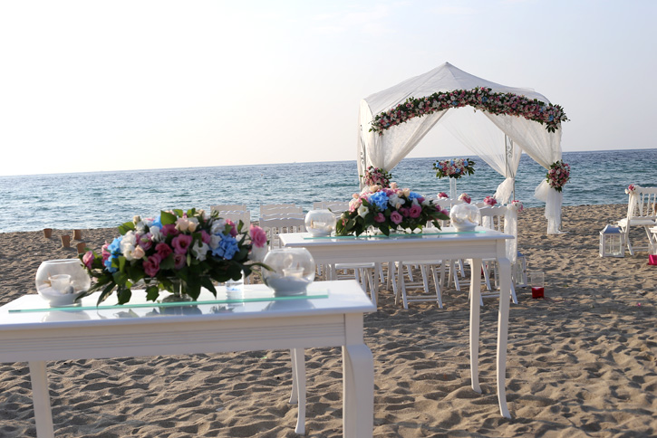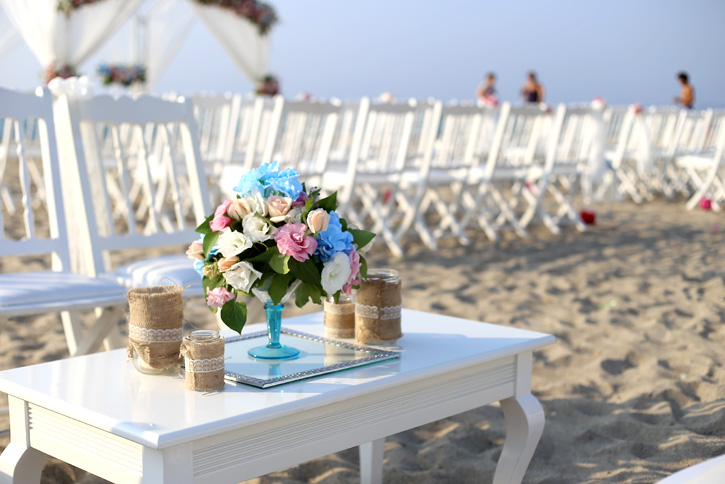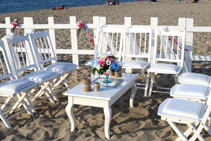 İzmir ve çevresinde düğün organizasyonu için müsait kumsal bulmanın zor olduğu düşünüldüğünde plaj düğünü / kumsal düğünü konseptinin tam olarak yansıtıldığı İzmir'e 100 km uzaklıktaki Davutlar Plajı'nda 80 kişilik keyifli bir düğün...